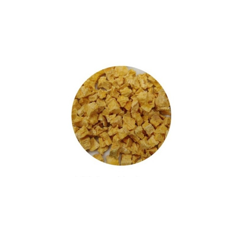 La frutta fresca viene tagliata secondo esigenze e formato, congelata rapidamente per sublimazione sottovuoto dove viene estratta la parte acquosa lasciando inalterata la parte di vitamine, sali, colore e sapore.